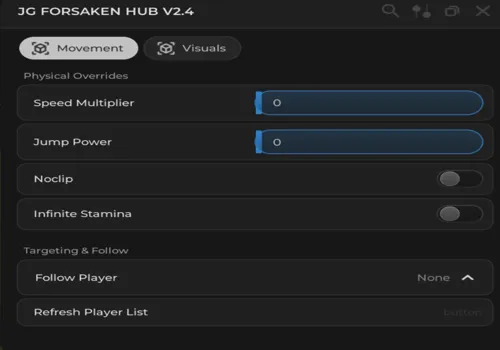 loadstring(game:HttpGet("https://raw.githubusercontent.com/PlutomasterAccount/Forsaken-ESP/refs/heads/main/Forsaken%20ESP%20Plutomaster.lua"))()JG Forsaken Hub v2.4